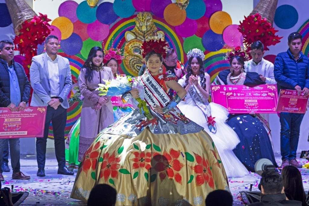 Las finalistas del barrio de San Mateo, Ximena Yunuel Mendoza Valeriano; de San Antonio, Malillany Vargas Pólito; de Santa Cruz, Violet Kihomi Chiney Reyes y de Tequicorral, María José Hernández Escobar, participaron en diferentes etapas que incluyeron presentación de traje típico y traje regional estilizado, donde ellas mismas plasmaron su creatividad y originalidad.
