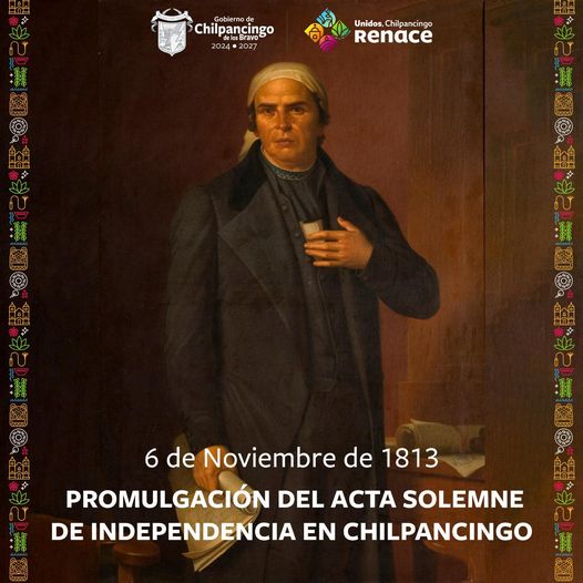 El 6 de noviembre de 1813 marca un día histórico para nuestro país y para Chilpancingo, cuando José María Morelos y Pavón declaró la independencia de la América Mexicana. Hoy, honramos este acto que nos inspira a seguir construyendo una nación justa y libre. 🇲🇽 Recordemos el valor de quienes lucharon por nuestra soberanía y trabajemos unidos para que los ideales de libertad y justicia sigan siendo el pilar de nuestra comunidad. ¡Celebremos con orgullo nuestra historia!