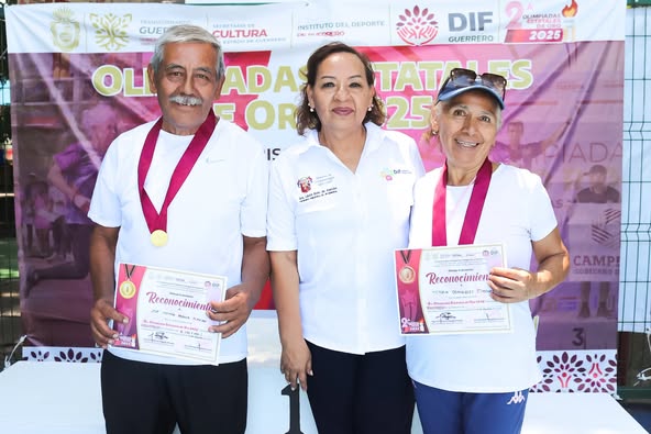 Chilpancingo brilló con entusiasmo y alegría en las Segundas Olimpiadas de Oro Estatales de Adultos Mayores, organizadas por el Sistema DIF Guerrero. La presidenta del DIF Municipal, Laura Bello Manzano, acompañó con orgullo a las y los participantes, quienes demostraron que la edad no es límite para seguir cumpliendo sueños y compartiendo talento. Con gran entrega y corazón, nuestros representantes participaron en canto, poesía, dominó, danza folclórica y atletismo, logrando excelentes resultados: 🏅 J. Carmen Abarca – Primer lugar en atletismo 🏅 Antonio Sevilla – Primer lugar en canto 🥈 Oguielve Martínez – Segundo lugar en poesía 🥈 Florinda Mateos – Segundo lugar en dominó 🥉 Silvestre Soto – Tercer lugar en poesía 🥉 Victoria Domínguez – Tercer lugar en atletismo ¡Muchas felicidades a todas y todos por dejar en alto a nuestro municipio! Ustedes nos inspiran con su pasión, energía y fortaleza. 💜