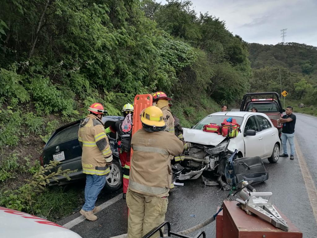 Elementos del H. Cuerpo de Bomberos de Chilpancingo en coordinación con la Secretaría de Salud del municipio y estudiantes de la escuela IMPEC que están haciendo su servicio en Bomberos atendieron el reporte de un accidente automovilístico en el antiguo Libramiento a Tixtla, a la altura del punto denominado como Las Antenas.